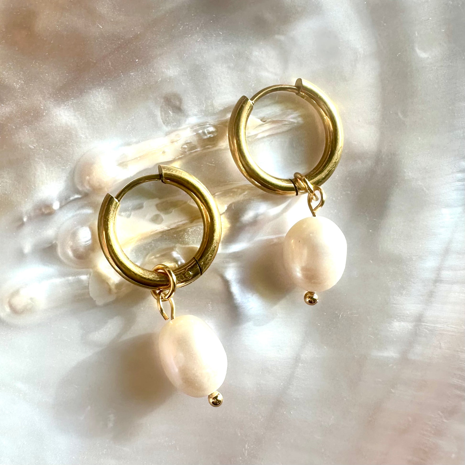 Each pair features sleek stainless-steel hoops paired with a genuine natural pearl charm, creating a timeless look that complements any outfit. These earrings are part of our mix-and-match collection, allowing you to swap charms with others, from playful enamel designs to semi-precious stones. One set of hoops, endless styling possibilities! And yes the hoops look stunning on their own, too.